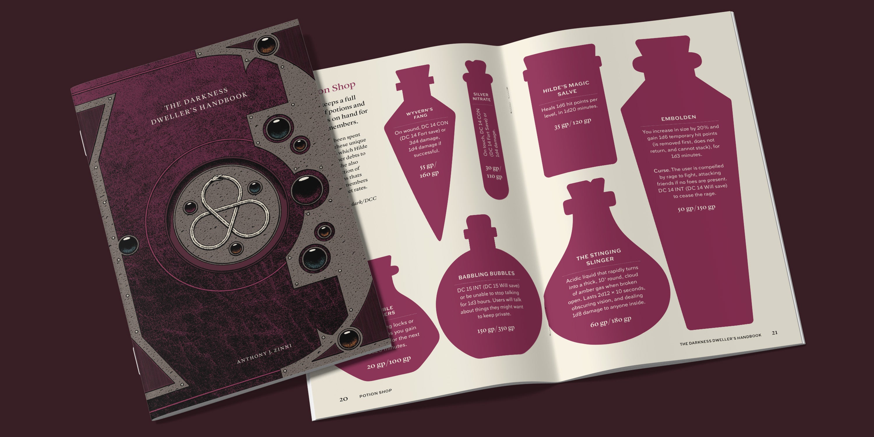 What does it mean to be a darkness dweller? This guidebook outlines the guild’s principles, operations, leadership, and home—The Vulgar Manse. It also includes a potion shop, fence, and contract generator to keep guild life lively.